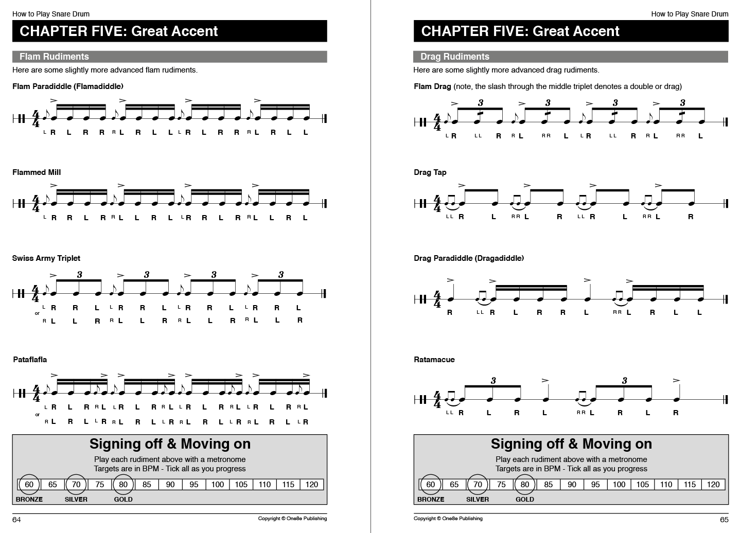 (Covers material required to pass Snare Drum Grades 1 - 5 with most UK Grade boards)