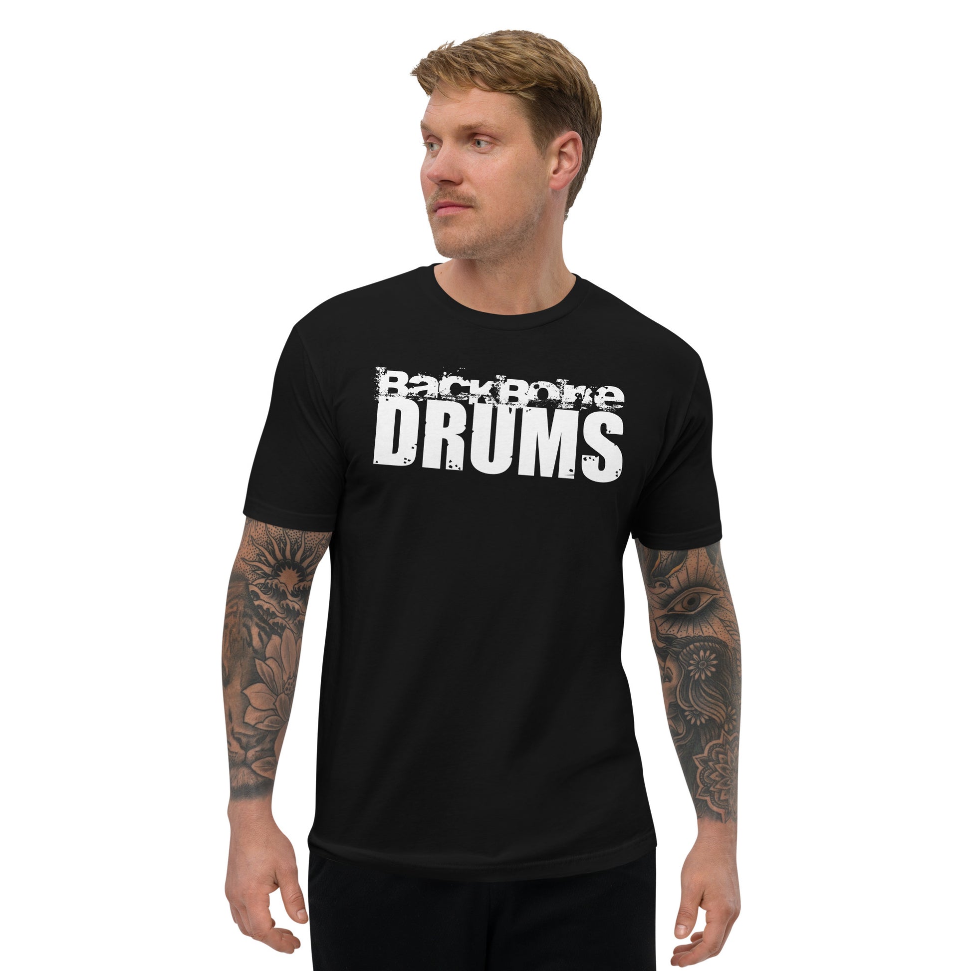 Featuring our classic logo on the front along with the spine made of drums and sticks on the back this is the ultimate drummer T.